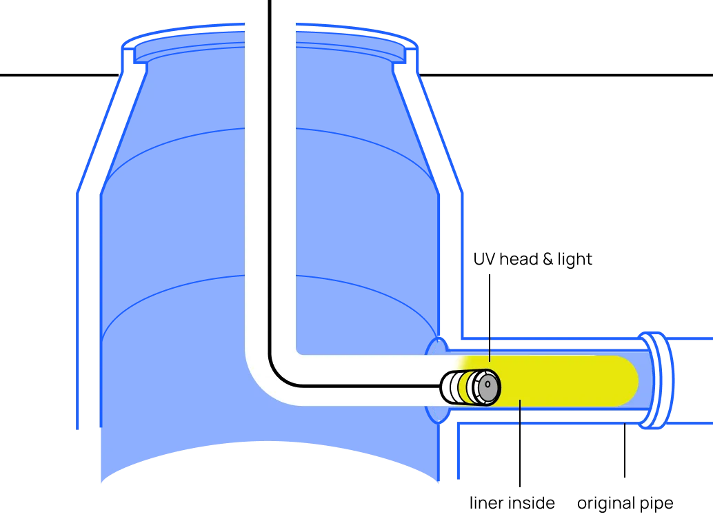 The UV head then cures the resin, creating a durable and high-quality pipe lining.